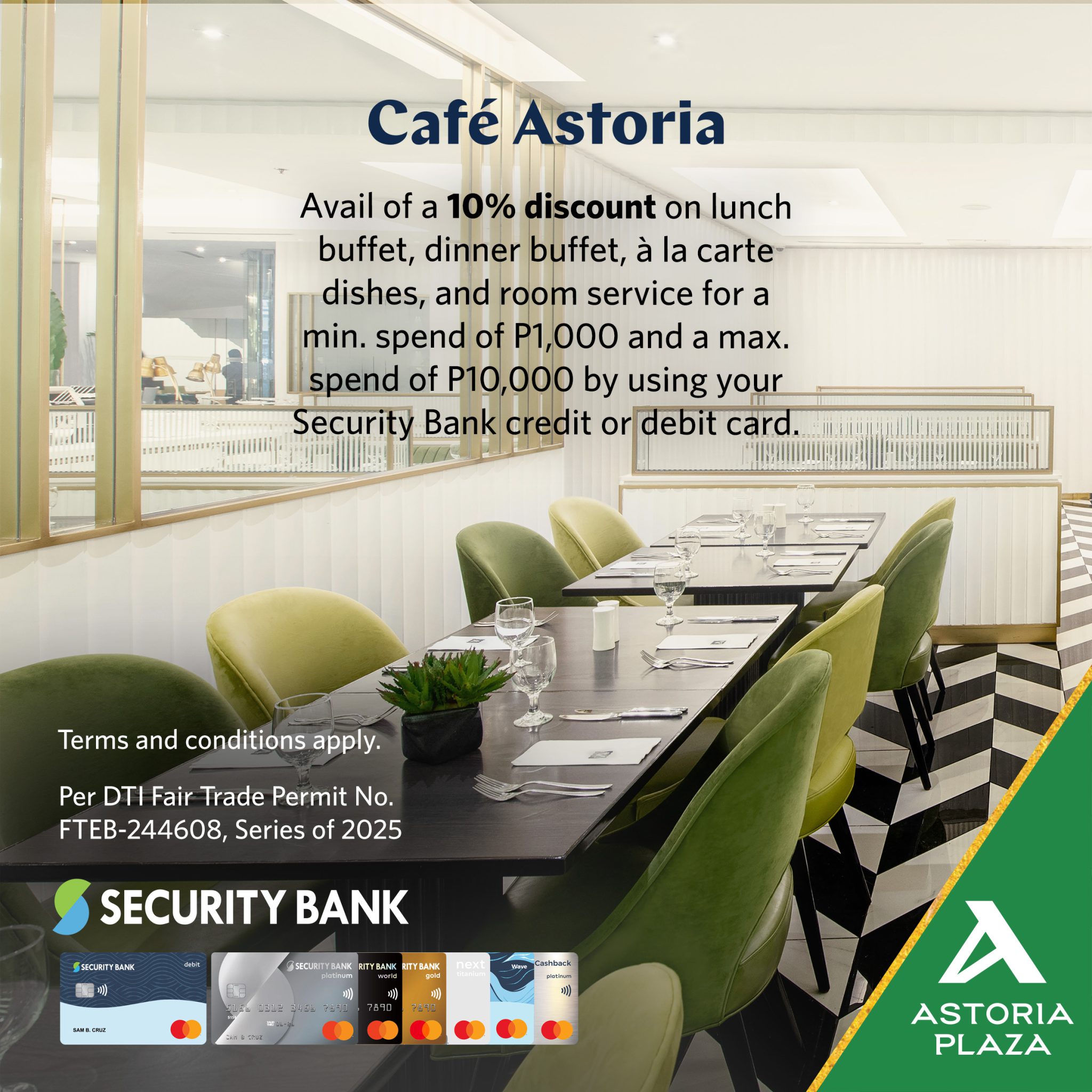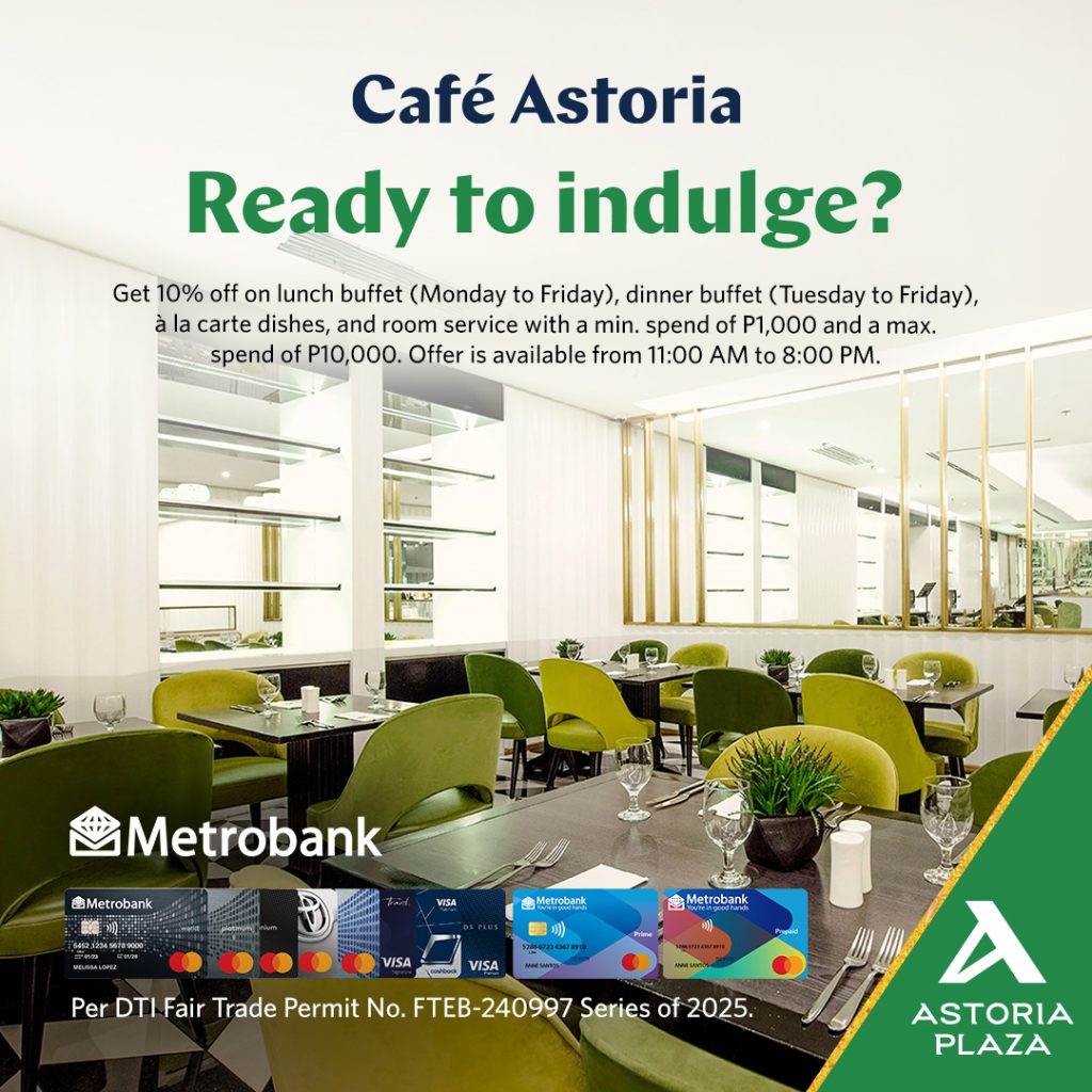 COMFORTING DINING AND VACATION EXPERIENCES SPECIAL OFFERS Bookmark this page and stay updated with our seasonal promos. COMFORTING DINING AND VACATION EXPERIENCES SPECIAL OFFERS Bookmark this page and stay updated with our seasonal promos. Check In Number of Nights Adults Children Book Now SUITE DEALS JUST FOR YOU! SPECIAL OFFERS Give yourself the staycation you deserve and enjoy the best Astoria Plaza has to offer! Special Offers EastWest Promo View Large Special Offers Metrobank Promo View Large Special Offers RCBC Credit Cards Promo View Large Special Offers Security Bank Promo View Large Special Offers AGTA – Metrobank Promo View Large Special Offers Café Astoria – Metrobank Promo View Large Special Offers Minami Saki by Astoria – Metrobank Promo View Large Special Offers Cafe Astoria – Security Bank Promo View Large Special Offers AGTA – RCBC Credit Cards Promo View Large Special Offers Minami Saki by Astoria – RCBC Credit Cards Promo View Large Special Offers Minami Saki – Security Bank Promo View Large Special Offers AGTA – Security Bank Promo View Large PROMO INQUIRY Please leave this field empty. Name* Email* Contact Number* Promo Name* Message